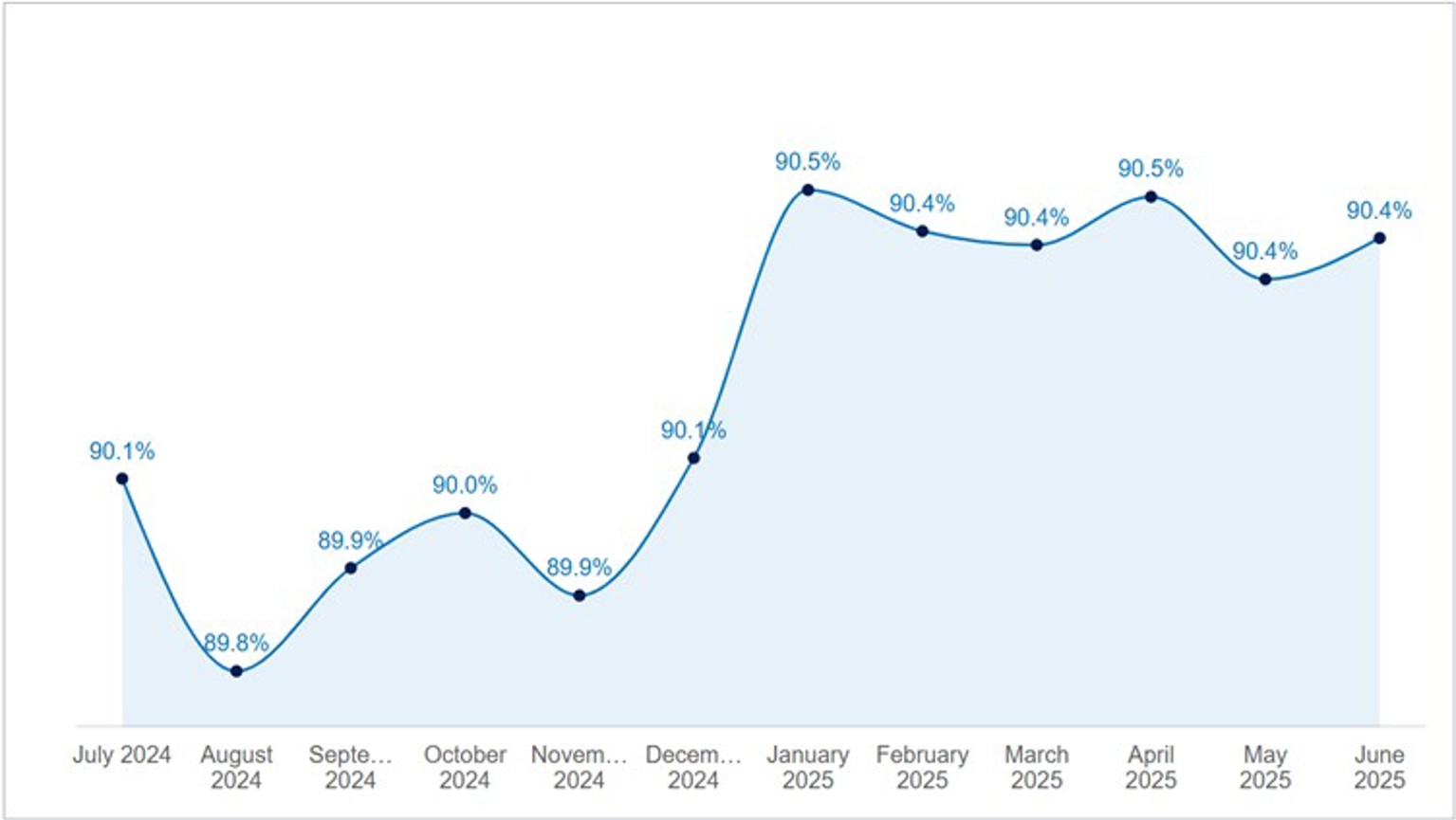 Download monthly punctuality and reliability from July 2024 to June 2025 report (XLSX, 168KB)