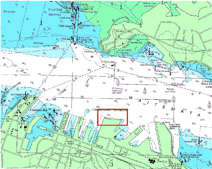 All mariners are advised that Drilling Barge operations are planned in the Westhaven and Northcote areas for several weeks. The barge will gradually reposition from South to North as its work progresses in the areas highlighted in green below. Work boat tenders will be servicing the barge. All mariners are advised to navigate with caution and to keep well clear of the barge. Wakes in the vicinity should be kept to a minimum.