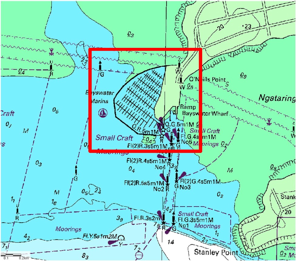 All mariners are advised to navigate with caution in the vicinity of the Hobson Bay/Okahu Bay derelict wave screen. Mariners are reminded that they should only navigate through the recognised entry/exit (as per chart NZ 5322).