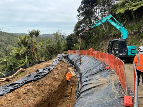 This is the final slip site under the cyclone recovery programme for Karekare Road and Lone Kauri Road.