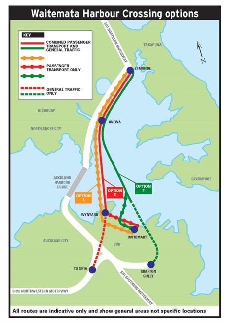 - a tunnel option via Wynyard Quarter from south of Onewa Road on the North Shore