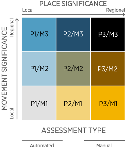 Roads and streets have different functions depending on the nature of land use and activity (Place) and the modal networks that are required to use them (Movement).